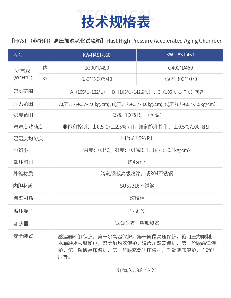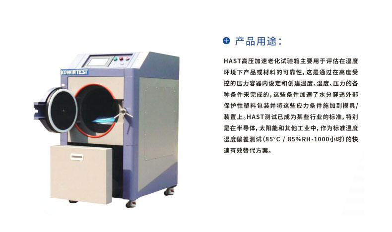 HAST高压加速老化试验箱主要用于评估在湿度环境下产品或材料的可靠性,这是通过高度受控的压力容器内设定和创建温度、湿度、 压力的各种条件来完成的。这些条件加速了水分穿透外部保护性塑料包装并将这些应力条件施加到模具装置上。 HAST 测试已成为某些 行业的标准,特别是在半导体,太阳能和其他工业中,作为标准温度湿度偏差测试(85℃/85%RH-1000 小时)的快速有效替代方案。